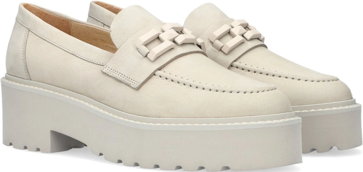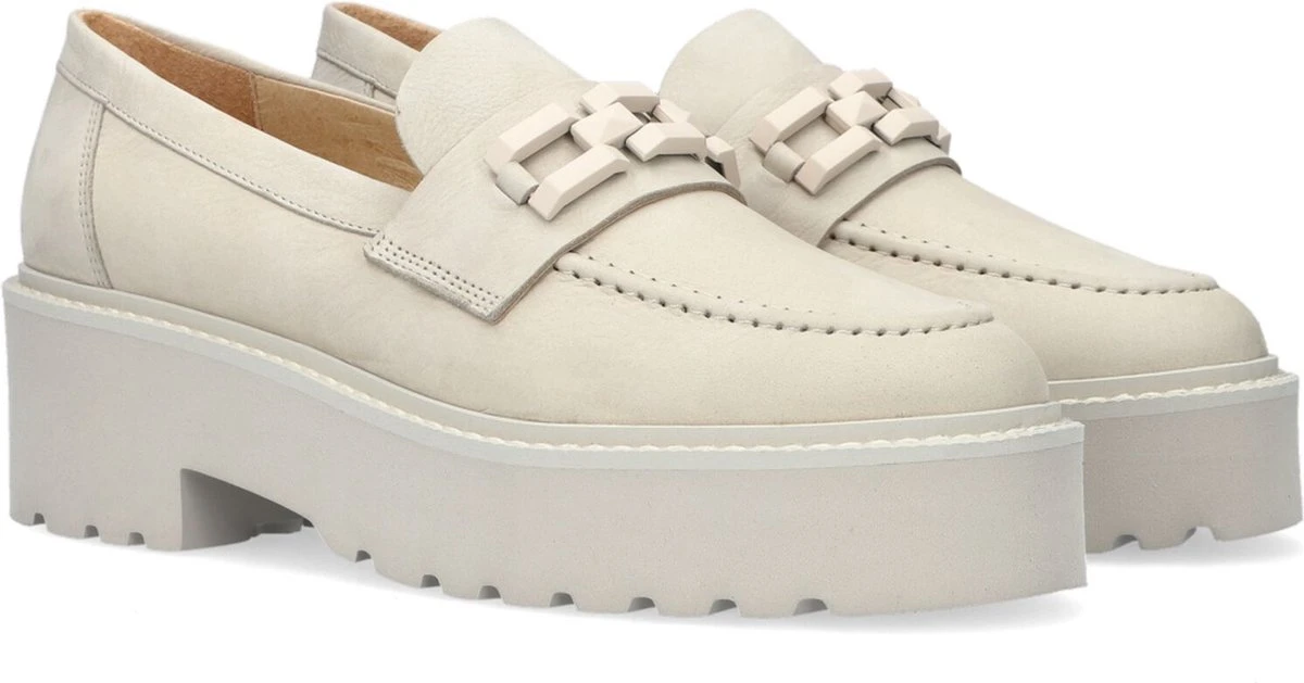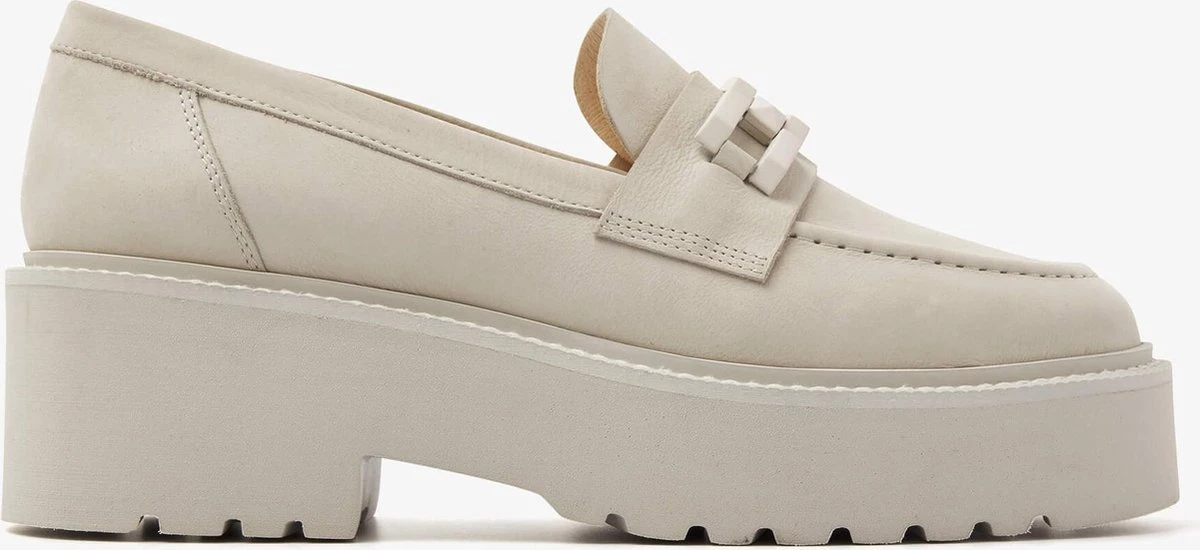 De platformzool met robuust profiel is écht niet meer weg te denken uit ons modebeeld. Deze populaire trend is overgewaaid naar de loafer en daaruit is de Lois Brake ontstaan. Deze loafer is niet alleen door haar zool een modieuze keuze, ook de ketting geeft de beige loafer een ‘kies mij!’ factor. Want eerlijk is eerlijk, met deze leren instapper maak jij iedere outfit compleet. Of je nu boodschappen gaat doen, of een avondje uit hebt met jouw vriendinnen. Met deze beige VIA VAI loafers steel jij de show!