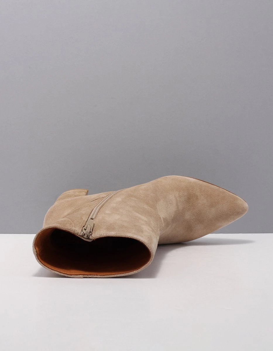 Classy en vrouwelijk staan nog nét niet op deze laarzen geschreven. Meet Maddy June! De all-over suède look creëert een zachte, stijlvolle basis, terwijl de spitse neus juist wat meer pit geeft. Een catchy detail waar je niet omheen kunt, zijn de naden die een mooie, ronde belijning op de schacht vormen. De comfortabele blokhak en de wat bredere schacht zorgen voor een casual finishing touch. All in one!