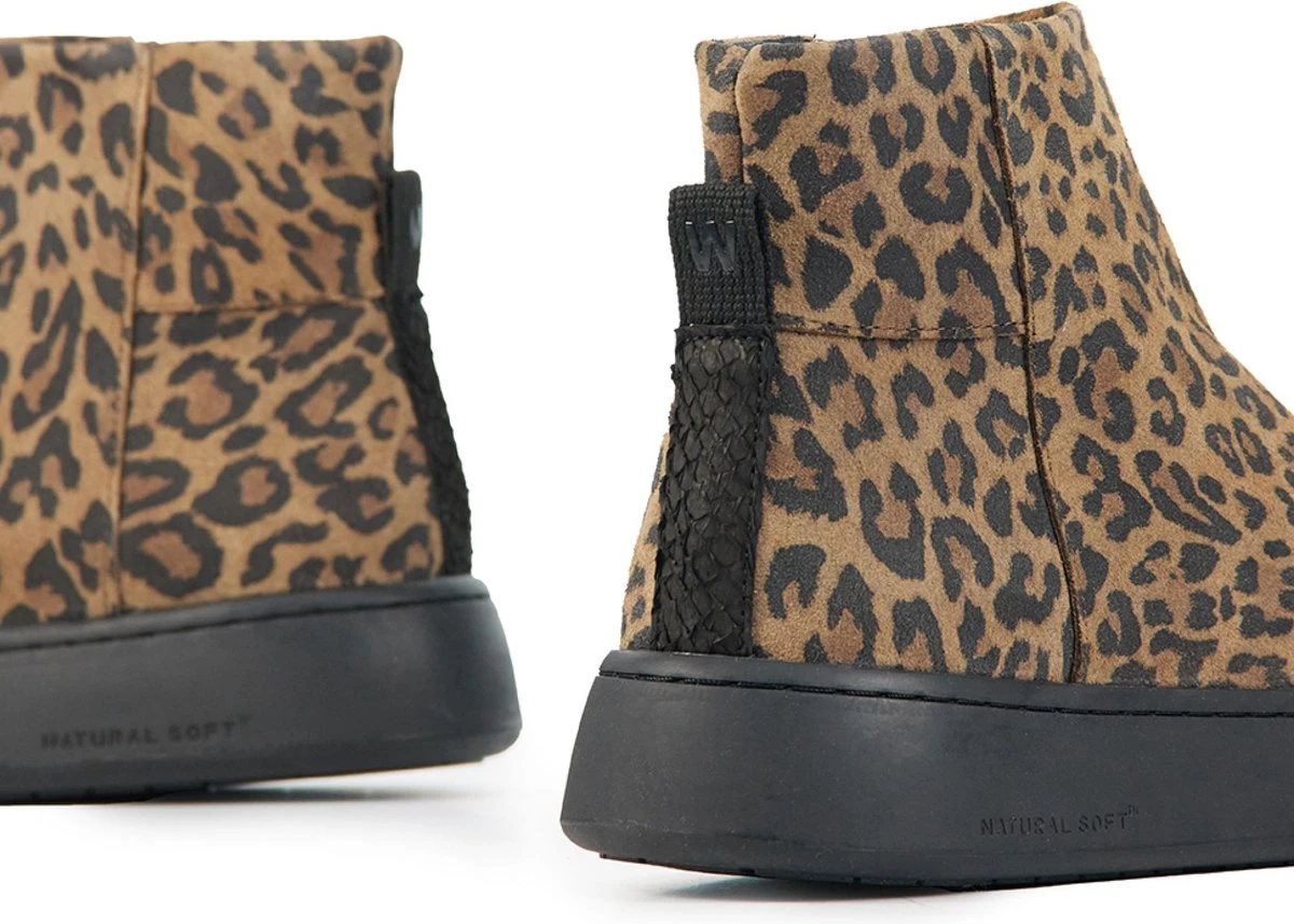 Damesschoen model Abbi Suède Print in de kleur leopard van Woden Pasvorm Dit model van Woden valt normaal op maat Beschrijving Enkellaars met leopard voor dames van het merk Woden. Deze laars met ronde neus is uitgevoerd in suède met luipaardprint. De binnenzijde van de schacht bevat een rits om het aan- en uittrekken te versoepelen. De binnenkant is uitgevoerd in leer en het uitneembare voetbed is te vervangen door een persoonlijke inlegzool. De zwarte rubberen zool heeft een medium profiel voor stevige grip.